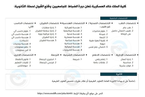 دورة الضباط للجامعيين وفىح باب القبول لحملة الثانوية لدى كلية الملك خالد العسكرية