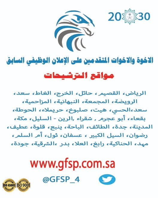 أعلنت شركة صقور الخليج للحراسات الأمنية عن اغلاق باب التوظيف ويتم التواصل مع المرشحين عبر الإيميل أو الاتصال المباشر حسب التفاصيل الموضحة أدناه: