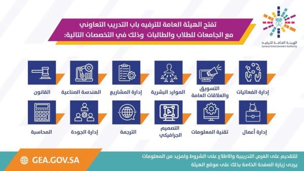 فتح باب التسجيل في برنامج التدريب التعاوني في 12 تخصص لدى الهيئة العامة للترفيه