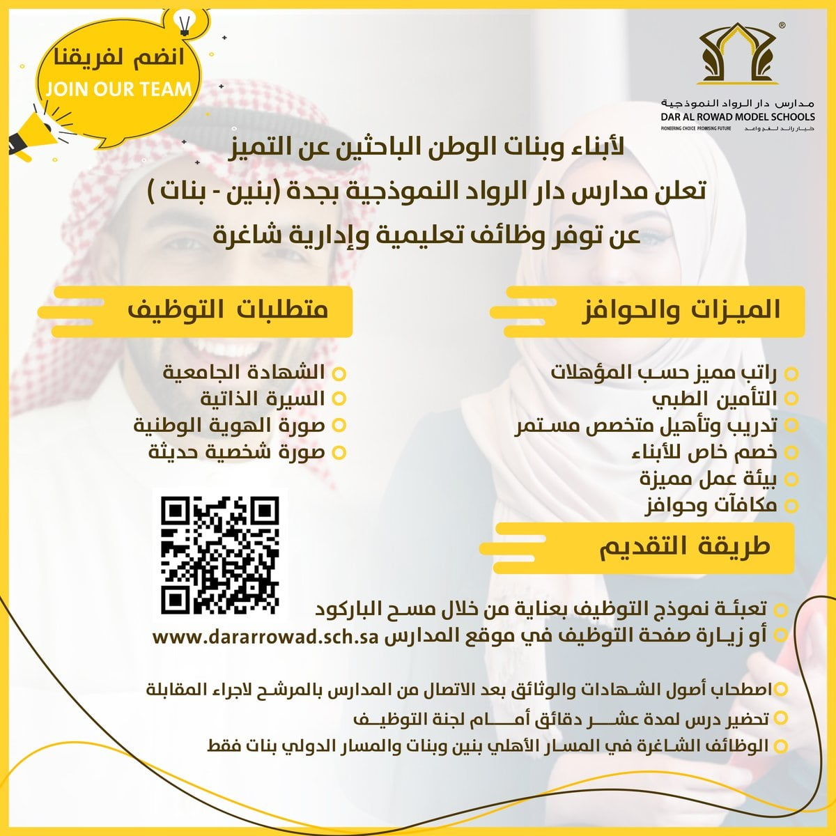 فتح باب التوظيف للوظائف التعليمية والإدارية لدى مدارس دار الرواد النموذجية بجدة