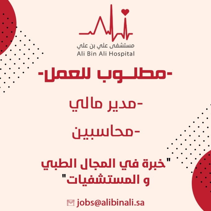 أعلن مستشفى علي بن علي توفر وظائف إدارية بمجالي المالية والمحاسبة بالرياض، وفقاً للتفاصيل وطريقة التقديم الموضحة أدناه.