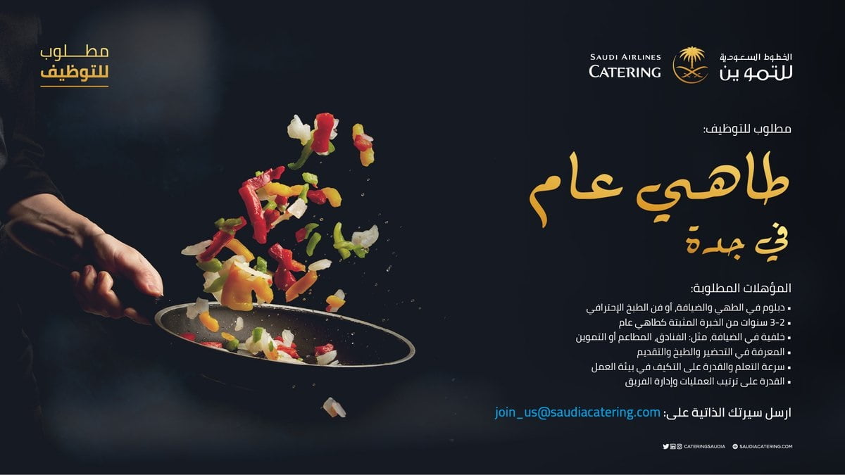 وظائف شاغرة لحملة الثانوية فأعلى بمدن متعددة لدى شركة الخطوط السعودية للتموين