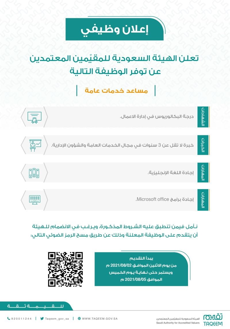 وظيفة إدارية بمجال الخدمات العامة لدى الهيئة السعودية للمقيمين المعتمدين