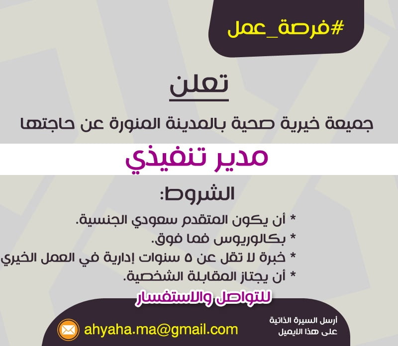 أعلنت الجمعية الخيرية لرعاية مرضى السرطان أحياها بالمدينة المنورة توفر 4 وظائف شاغرة للرجال والنساء لحملة الثانوية فأعلى .
