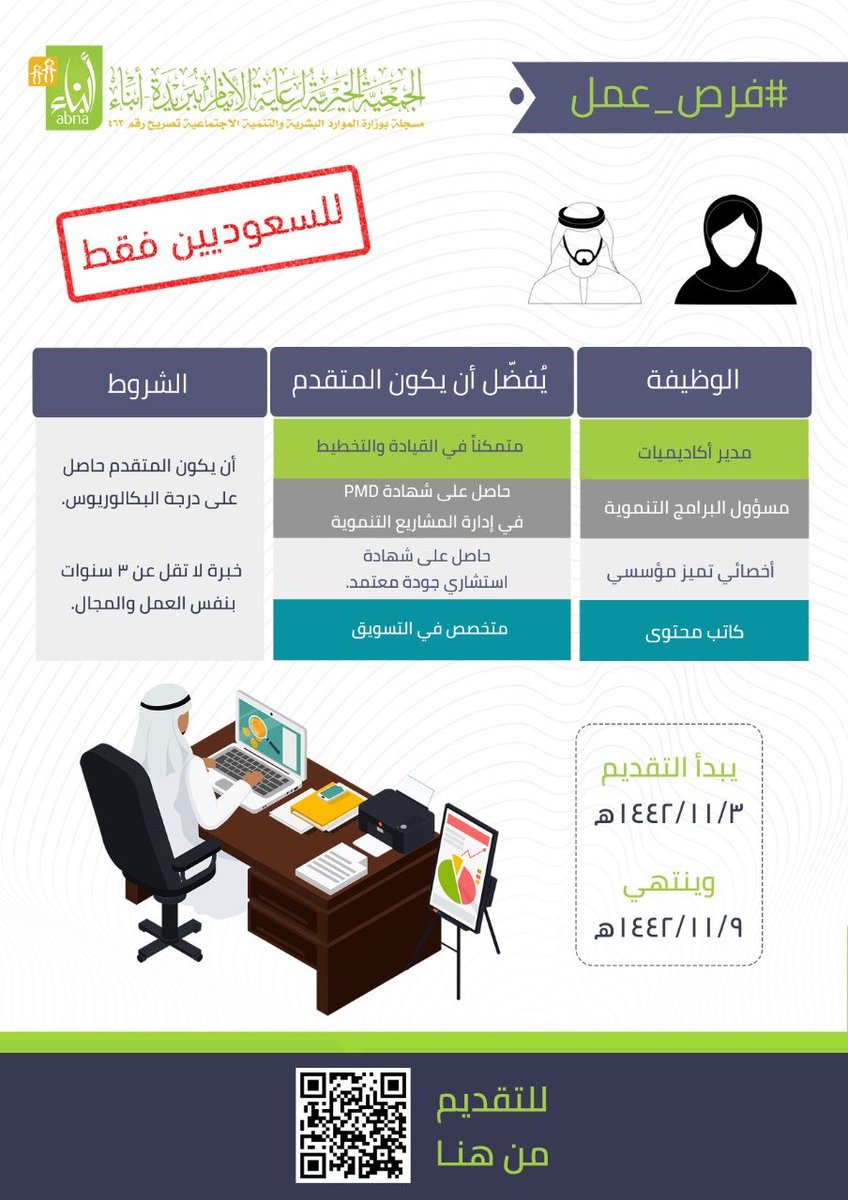 4 وظائف شاغرة للجنسين لدى الجمعية الخيرية لرعاية الأيتام ببريدة أبناء